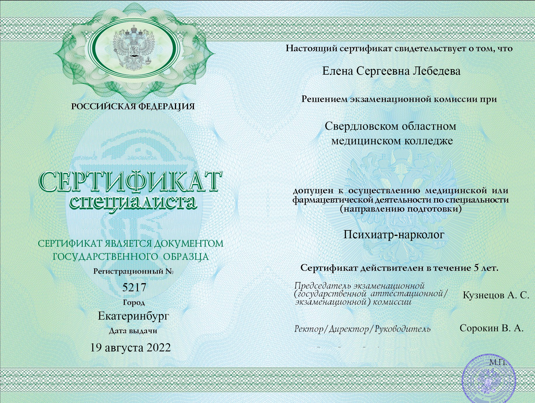 Елена Сергеевна Лебедева врач нарколог клиники доктора Стукаловой в Шипуново